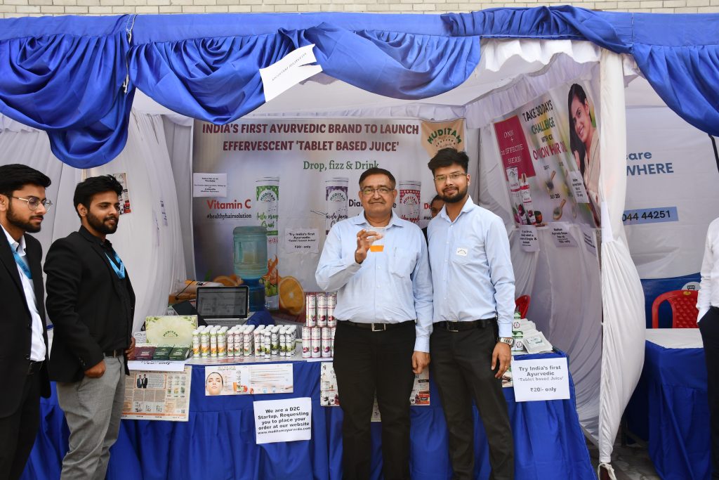 The Day 1 of the national seminar on Ayush Healthcare Sector: Opportunities & Challenges commenced with the Inaugural Ceremony wherein Prof. Reena Agarwal (Chairperson, Social Responsibility Committee) guided and motivated the participants for taking part in various events of the day. The seminar began with its first component in which various products and services within the Ayush Healthcare space were exhibited. The day then went ahead with the second component which was the Hackathon which featured several activities and competitions related to start-up culture, providing a platform to showcase one’s innovative ideas relating to the Ayush Healthcare sector.