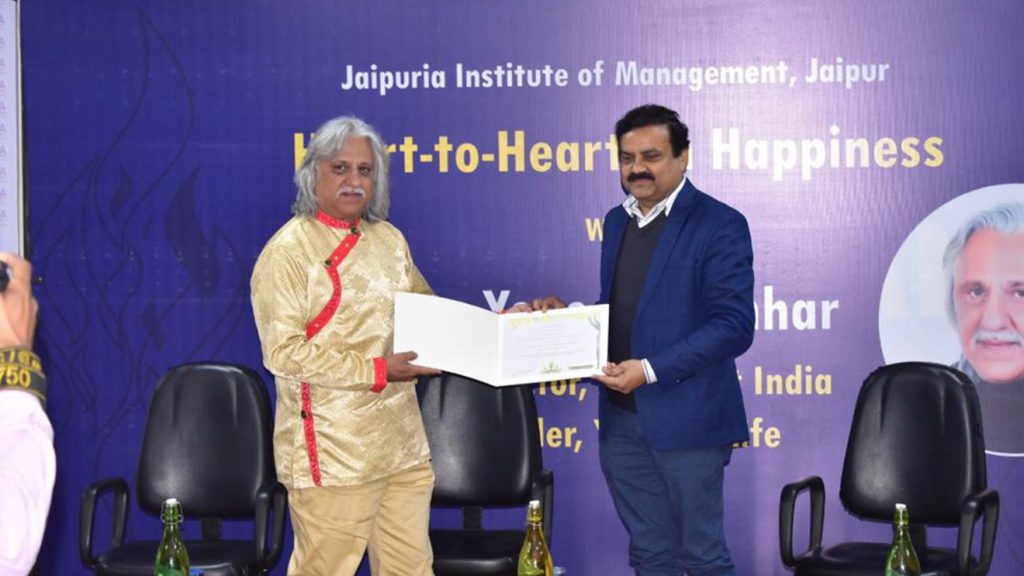 “Happiness is not something ready-made. It comes from your own actions.” Jaipuria Institute of Management, Jaipur organised a Heart-to-Heart session with the guest, Yogesh Kochhar, Ex. Director, Microsoft India and Founder, YourOneLife. He talked about ‘Your One Life’ application and how one can manage and work on one’s own life. He also talked about two minds of a person and how to keep it balanced.